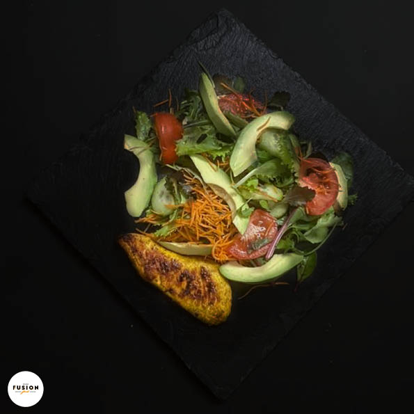 Une délicieuse salade de poulet grillé mariné, accompagné d’avocat, selon les recettes ancestrales de la cuisine arabo-espagnole, où chaque famille garde sa propre version avec un grand secret, le tout arrosé d’une vinaigrette aux agrumes.